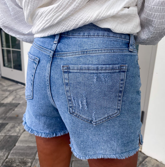 Barefoot Beach High Rise Denim Shorts by VERVET