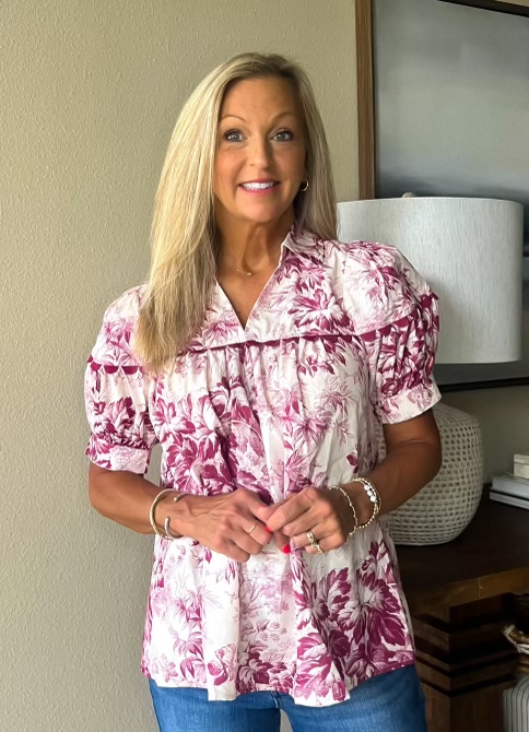 Merlot Floral Print Top