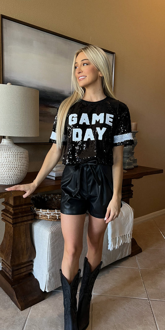 Sold outBlack Sequin Game Day Top